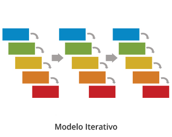 No Modelo Iterativo, o todo é produzido passo a passo, e há um aprofundamento do entendimento e da amplitude do projeto em cada etapa.