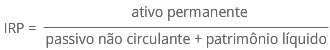 A imobilização de recursos permanentes – IRP – revela a porcentagem dos recursos permanentes, representados por passivo não circulante e patrimônio líquido, que se encontra imobilizada em ativos também permanentes.