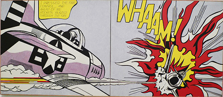 LICHTENSTEIN, Roy. Whaam! 1963. Acrílico e óleo s/ tela. 170 x 400 cm. Tate Modern, Londres.